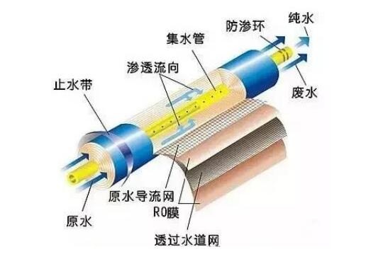 先來說說濃縮廢水是怎么產(chǎn)生的。原水預(yù)處理系統(tǒng)中的PP棉濾芯和活性炭濾芯,一般是沒有濃縮廢水產(chǎn)生的。雜質(zhì)吸附著在濾芯上,6~12個月需要進行一次更換。而濃縮廢水的直接來源則是設(shè)備的核心部件——RO膜。RO膜工作的過程,就是一個液體濃縮的過程。原水在增壓泵的作用下,一部分水體通過RO膜凈化為純水,另一部分水體則將微粒、膠體等顆粒較大的雜質(zhì)及覆蓋在膜表面或膜孔內(nèi)的沉積物帶出RO膜,從未形成了廢水。